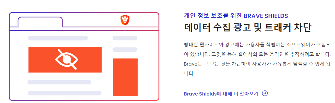 브레이브 웹 브라우저는 데이터수집을 추적기를 차단하며, 사이트 연결 시 보안연결로 넘어갑니다.
