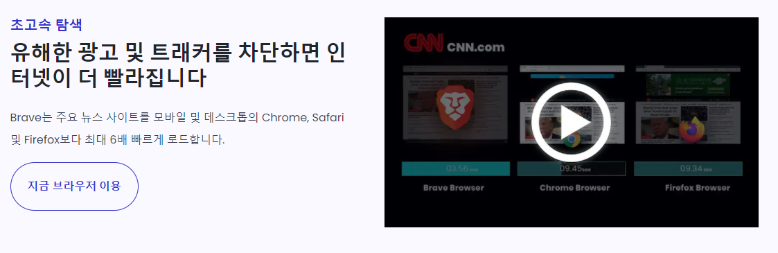그로 인해 브레이브 웹 브라우저 이용 시 인터넷 속도가 상승하며, 보다 빠른 인터넷을 사용 할 수 있습니다.
