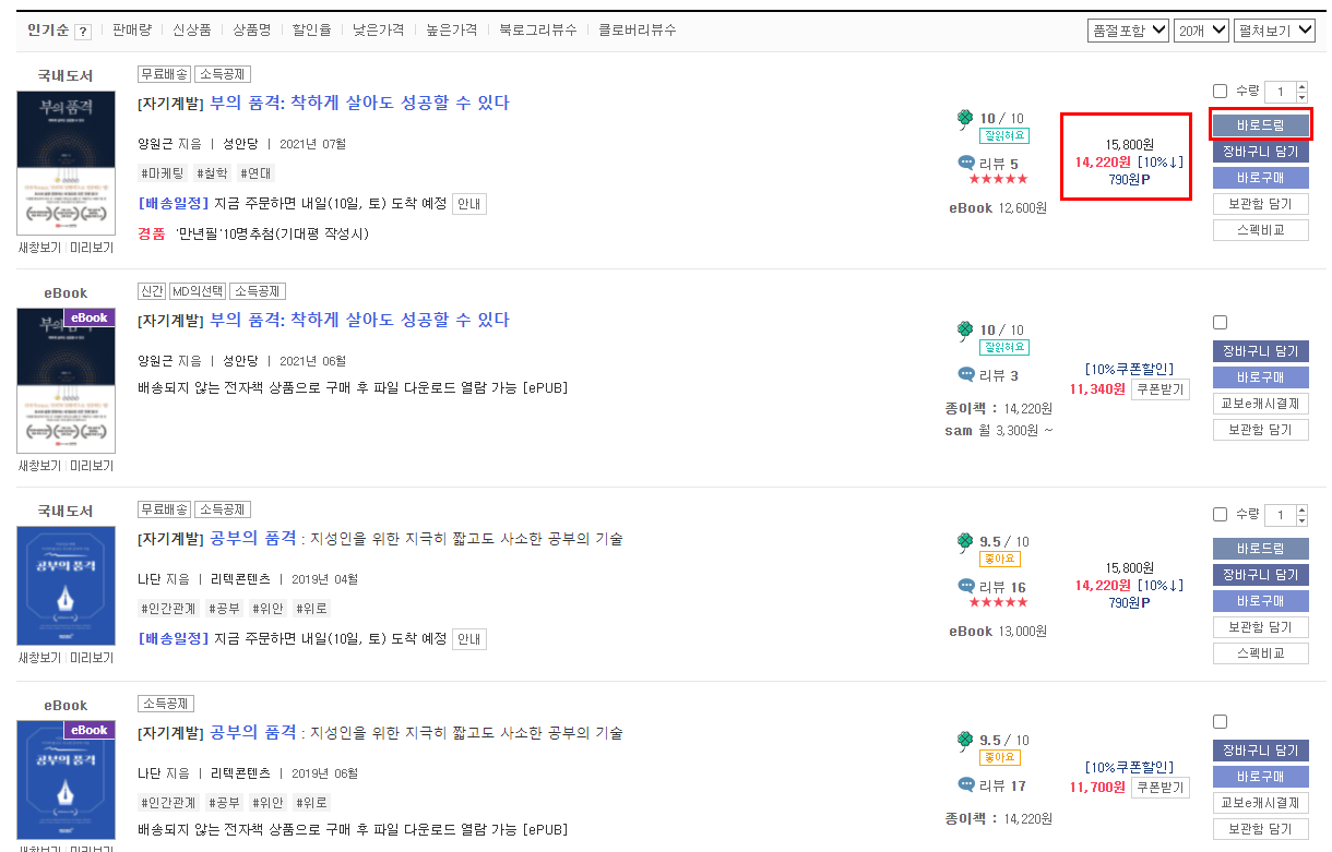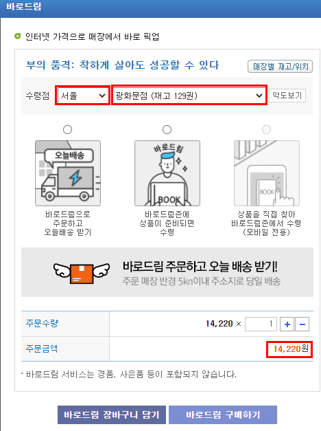 그럼 교보문고에서 책을 싸게 사는방법 '바로드림'을 자세히 알아보겠습니다.