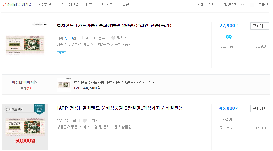 하지만, 포털사이트에서 해당 상품권을 검색하시면 3~10% 까지 할인된 가격에 판매합니다.