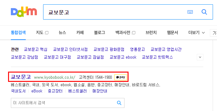 검색 후 상단 이미지처럼 교보문고 홈페이지 주소가 나와있으며,