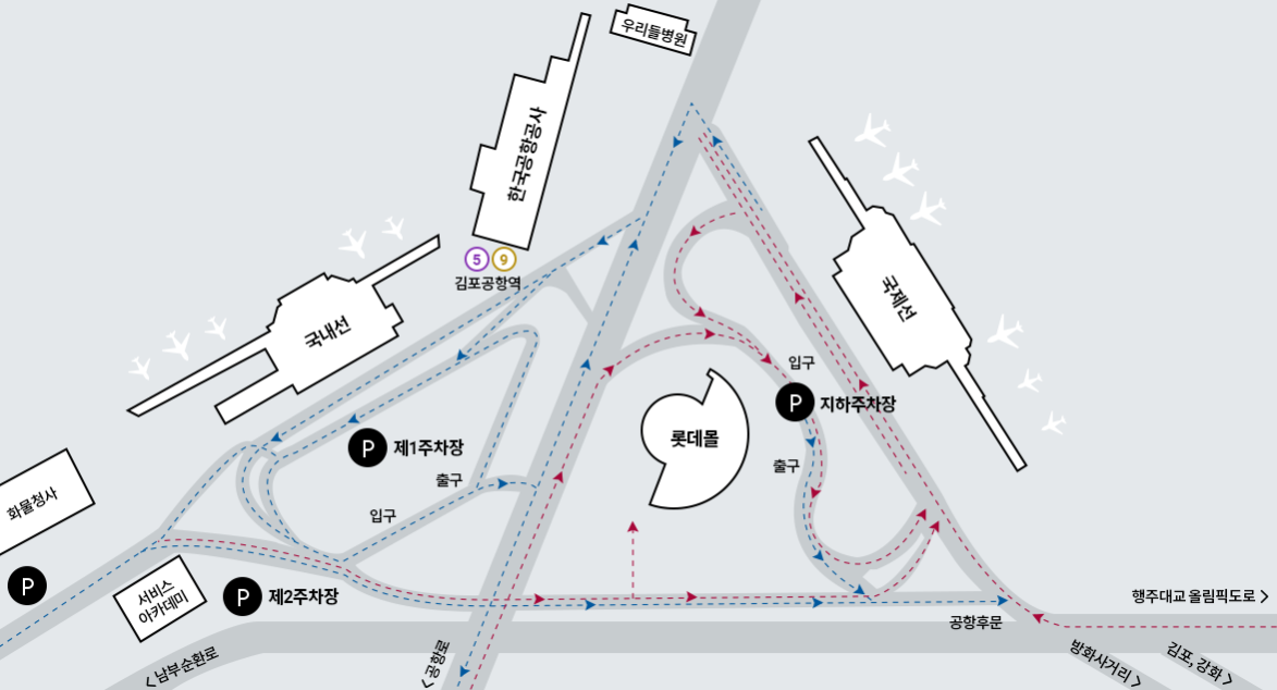 짐이 많이 없으시다면 김포공항 이용 시 지하철 또는 대중교통을 이용하시는 것도 좋은방법입니다.
