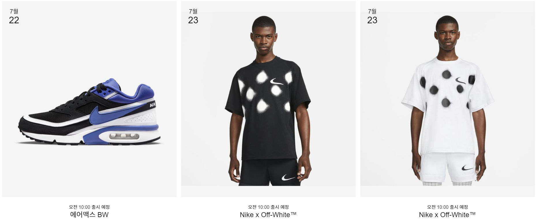 곧 출시될 나이키 신상품에 대한 리스트가 나옵니다.
