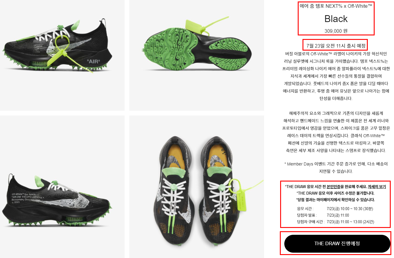 나이키 드로우는 상시 진행중이며,