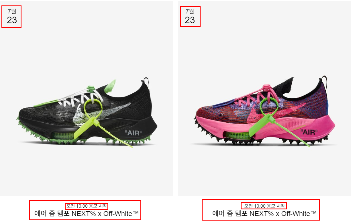 예시로 '에어 줌 템포 NEXT% x Off-White' 제품을 클릭하여 보겠습니다.