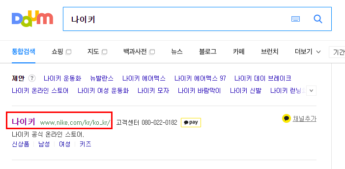 다음, 네이버, 구글 포털사이트를 통해 나이키를 검색합니다.