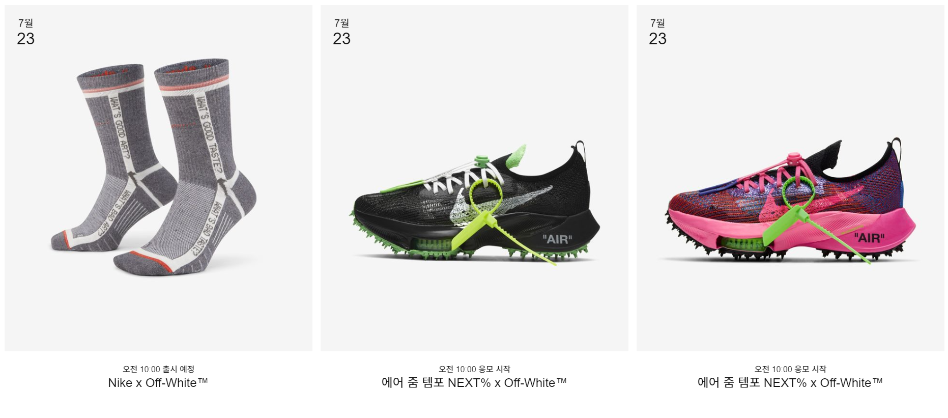 '출시 예정'으로 된 상품은 별도로 응모없이 선착순으로 구매 가능한 제품입니다.
