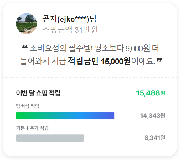 쇼핑을 자주 하시는 분들에게는 후기작성만으로 월 구독료 이상을 포인트로 얻을 수 있습니다.