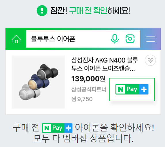 네이버페이+ 아이콘 여부를 확인해야 합니다.