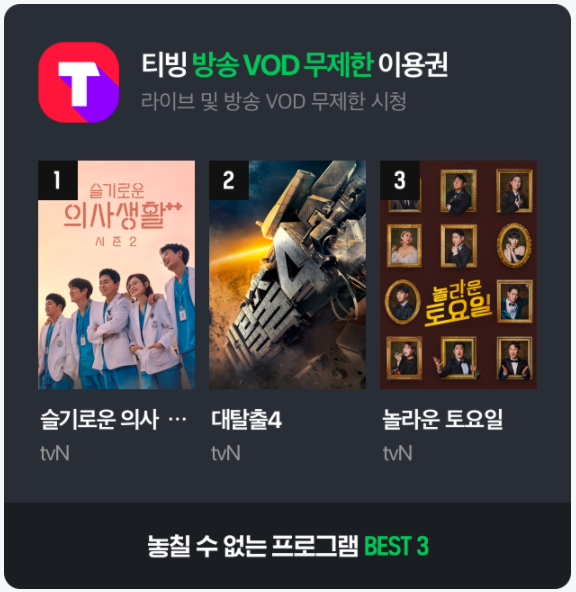 티빙(TVING) 방송 VOD 무제한 이용권