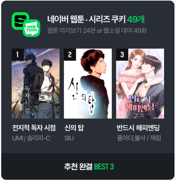 네이버 웹툰 쿠키 49개