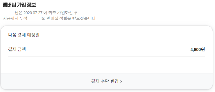 현재 네이버 멤버십 구독중이라 가입정보 이미지로 대체했습니다.