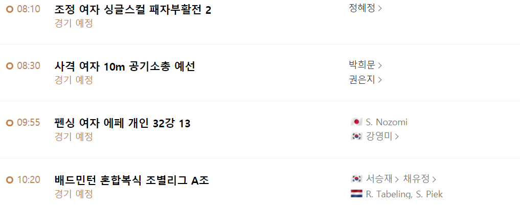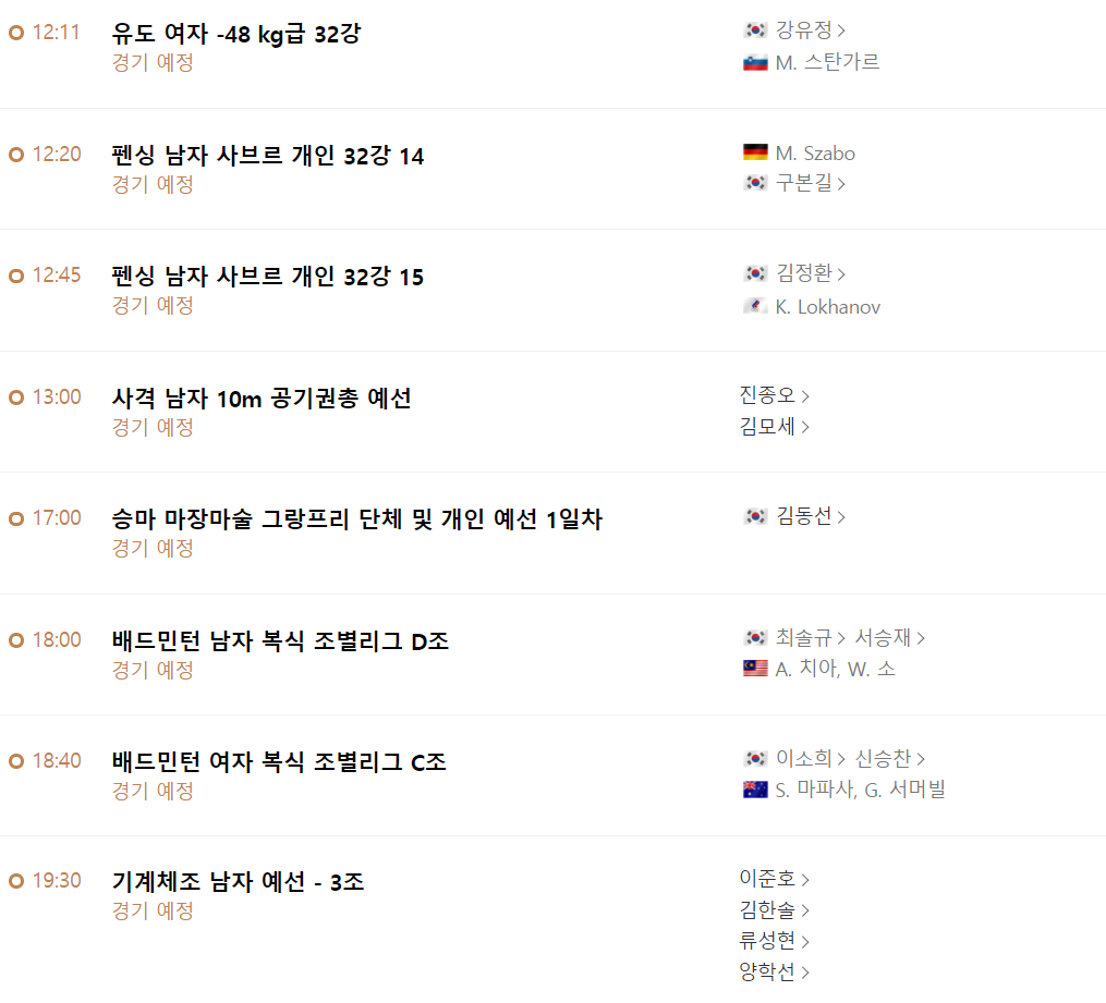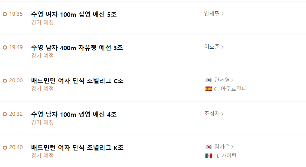 ※ 도쿄올림픽 7월 24일 경기일정