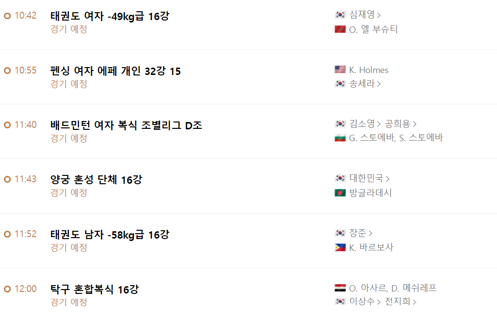 ※ 도쿄올림픽 7월 24일 경기일정