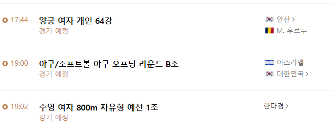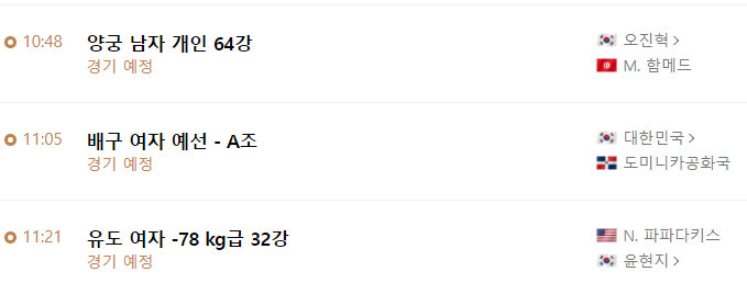 64강전 승리 시 오후 18시 23분에 여자 양궁 개인전 32강 경기를 합니다.