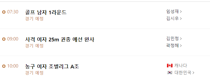| 도쿄올림픽 7월 28일 경기일정(금메달 유력종목) (0) | 2021.07.26 |