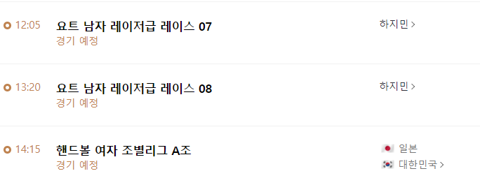 전체경기 일정이 아닌 자랑스런 대한민국 선수들의 경기일정만 알아보겠습니다.