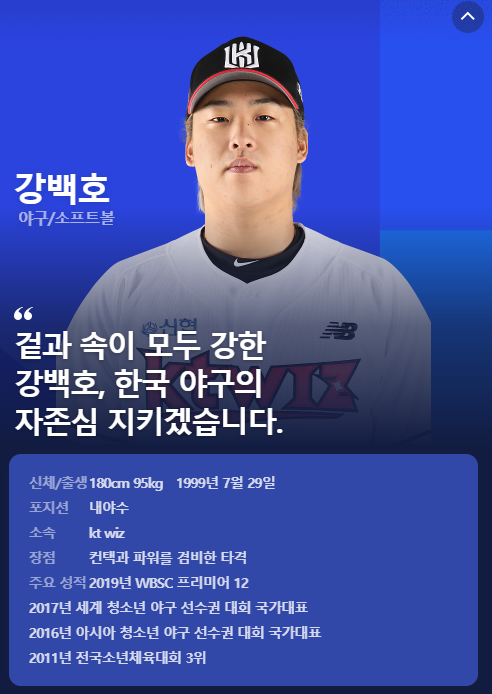4할에 가까운 강백호를 주축으로 KBO 주력선수들이 포함된 한국 야구대표팀입니다.