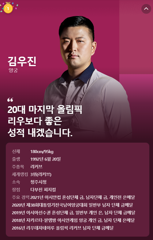 (김우진 선수 양궁 세계랭킹 - 3위)