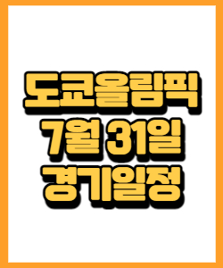 이번 포스팅에서는 도쿄올림픽 7월 31일 경기일정에 대해서 알아보겠습니다.
