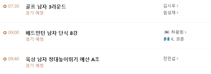 그럼 2020 도쿄올림픽 7월 31일 경기일정에 대해서 자세히 알아보겠습니다.