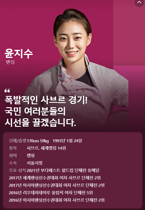 최근 사브르 단체전 경기에서 좋은 모습을 보여줬던 만큼 헝가리를 꺽고 4강에 간다면 금메달 가능성이 있는 종목입니다.