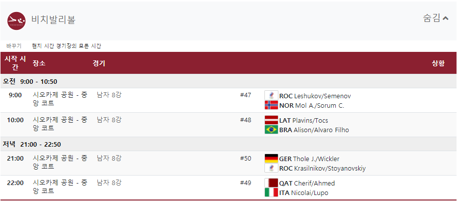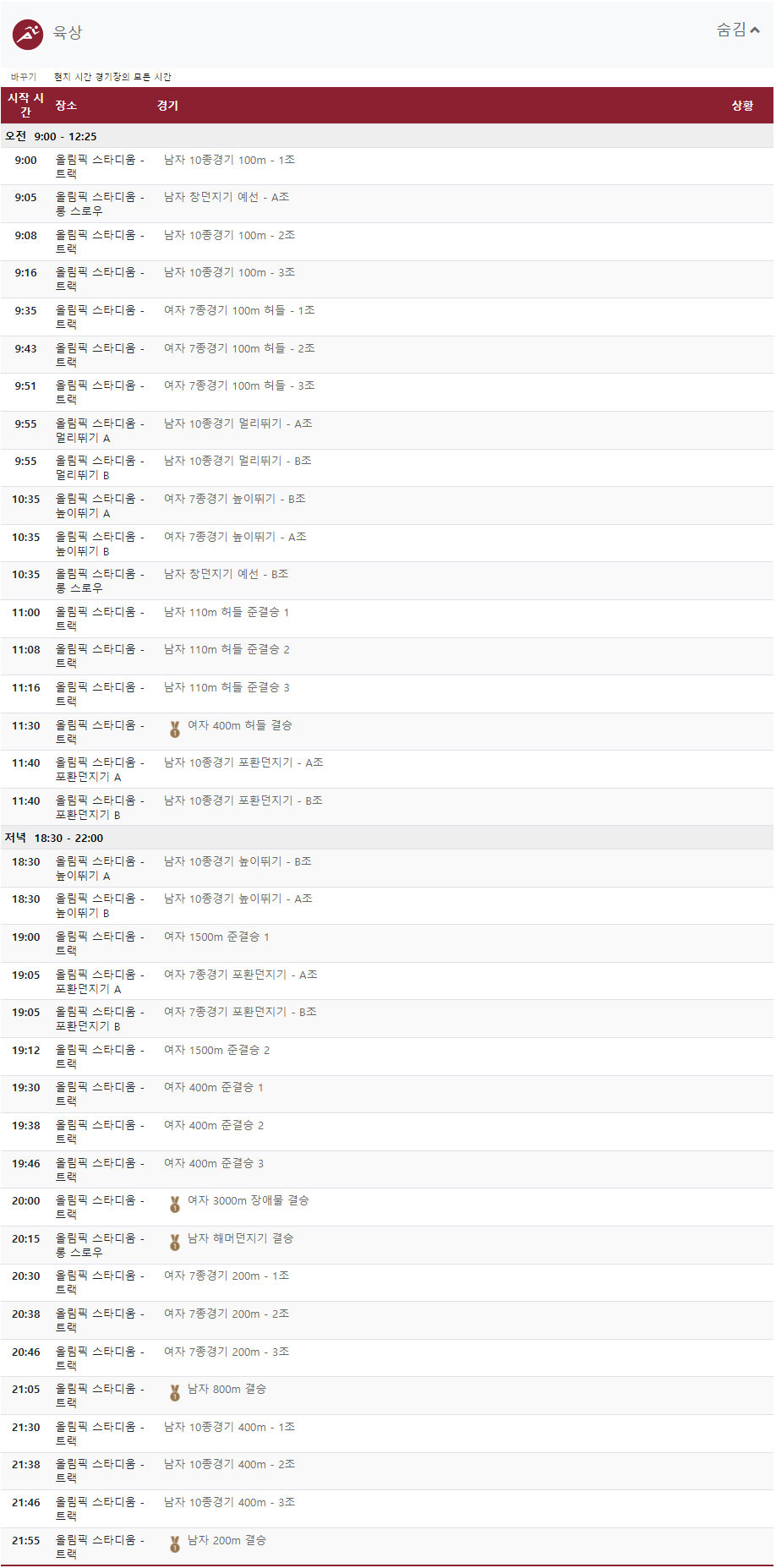 ※ 도쿄올림픽 8월 4일 전체경기 일정