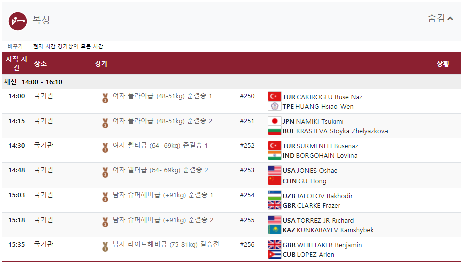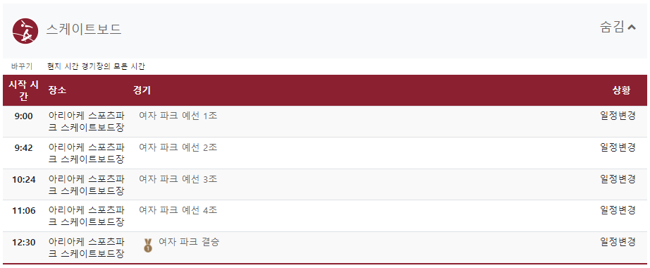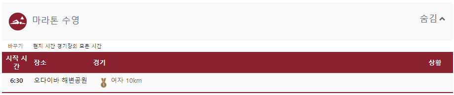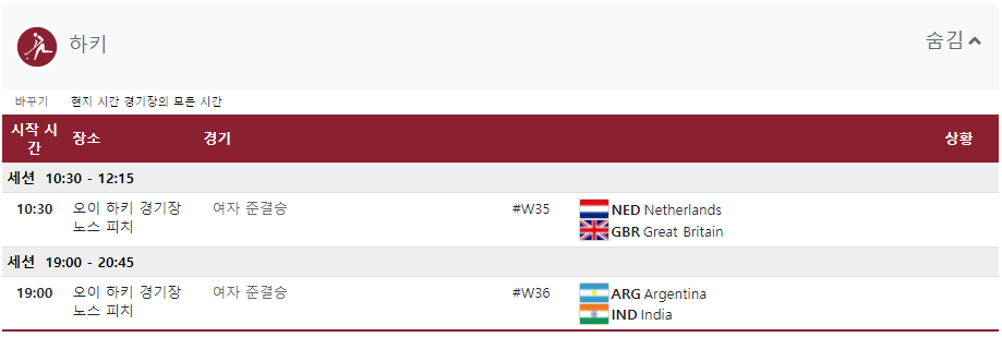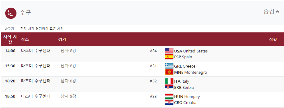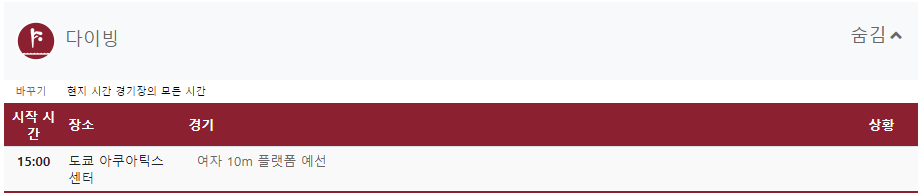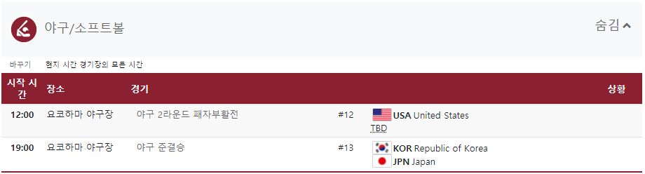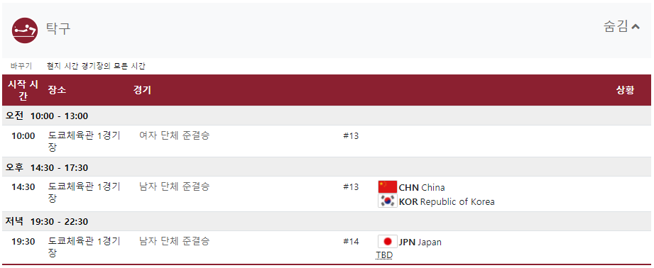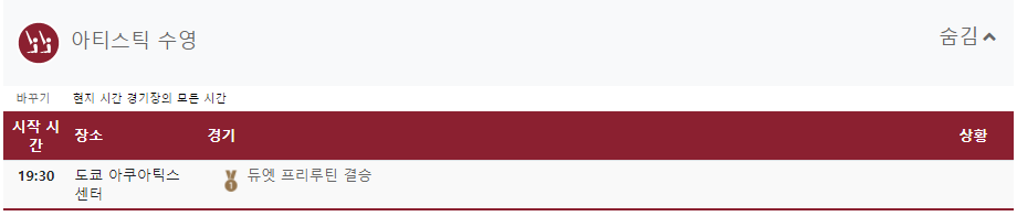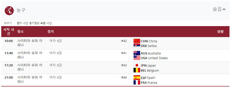 ※ 도쿄올림픽 8월 4일 전체경기 일정