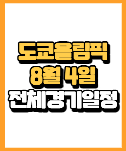 이번 포스팅에서는 2020 도쿄올림픽 8월 4일 전체경기일정에 대해서 포스팅하겠습니다.