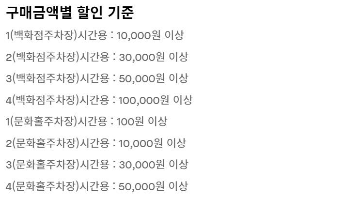 5만원 ~ 10만원 구매고객 - 3시간 무료주차