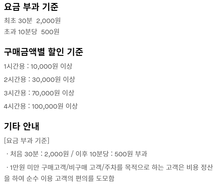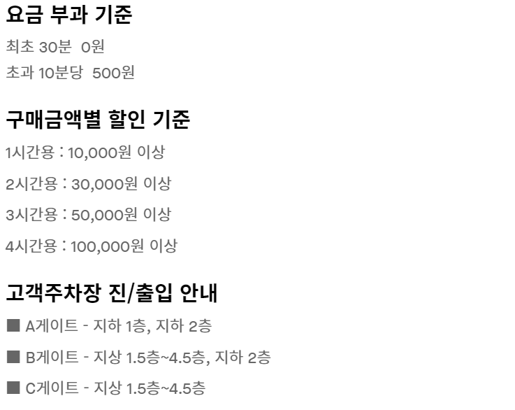 3만원 ~ 10만원 구매고객 - 3시간 무료주차