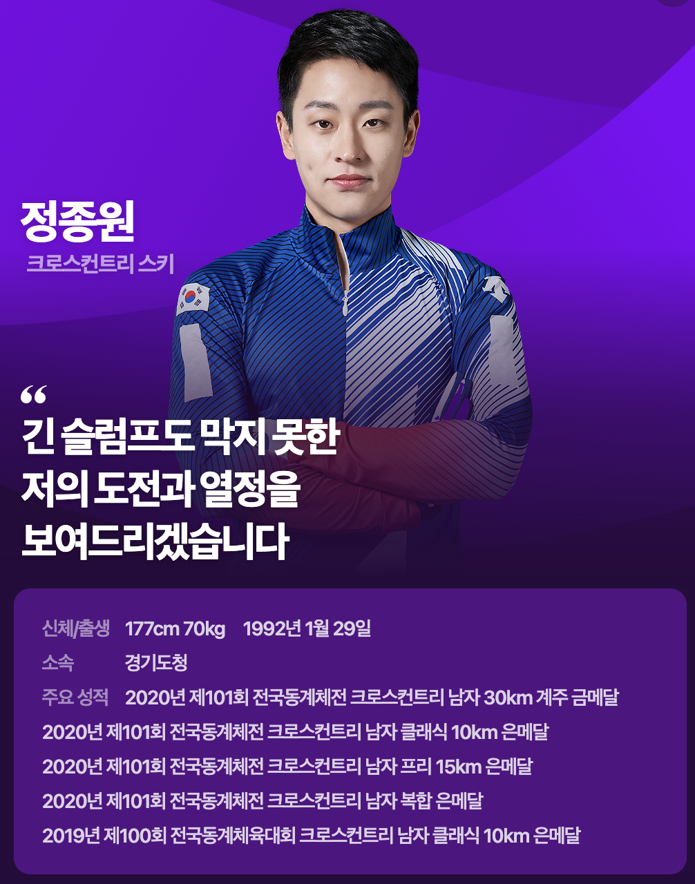 2014년부터 국가대표로 활동했으며, 2018 평창올림픽에서 단체전 11위를 기록했습니다.