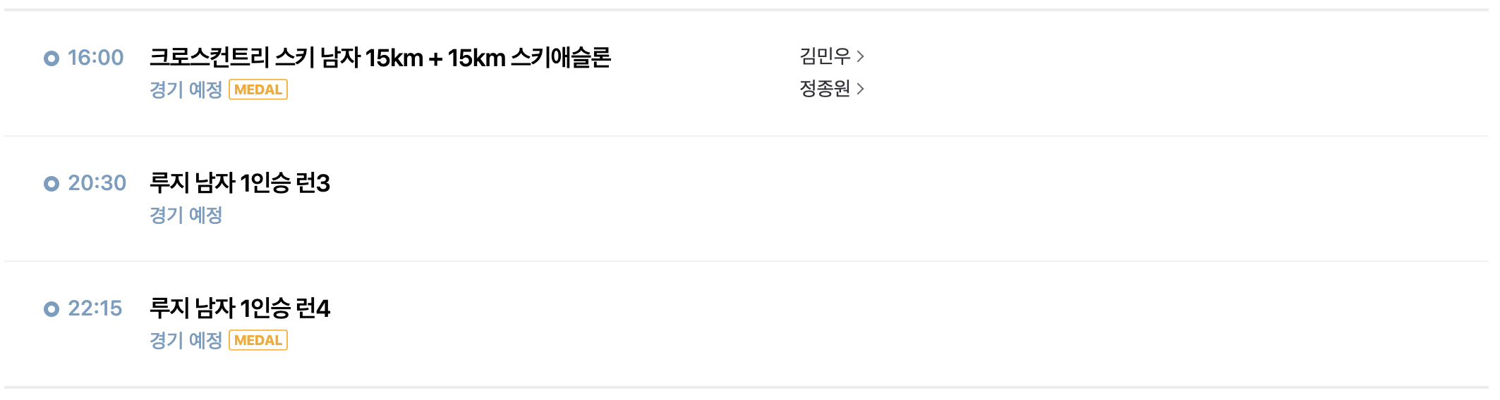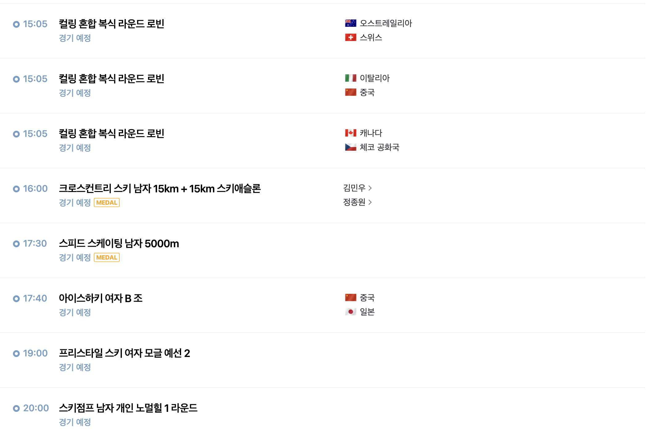 그럼 2월 6일 대한민국선수 경기일정을 알아보겠습니다.