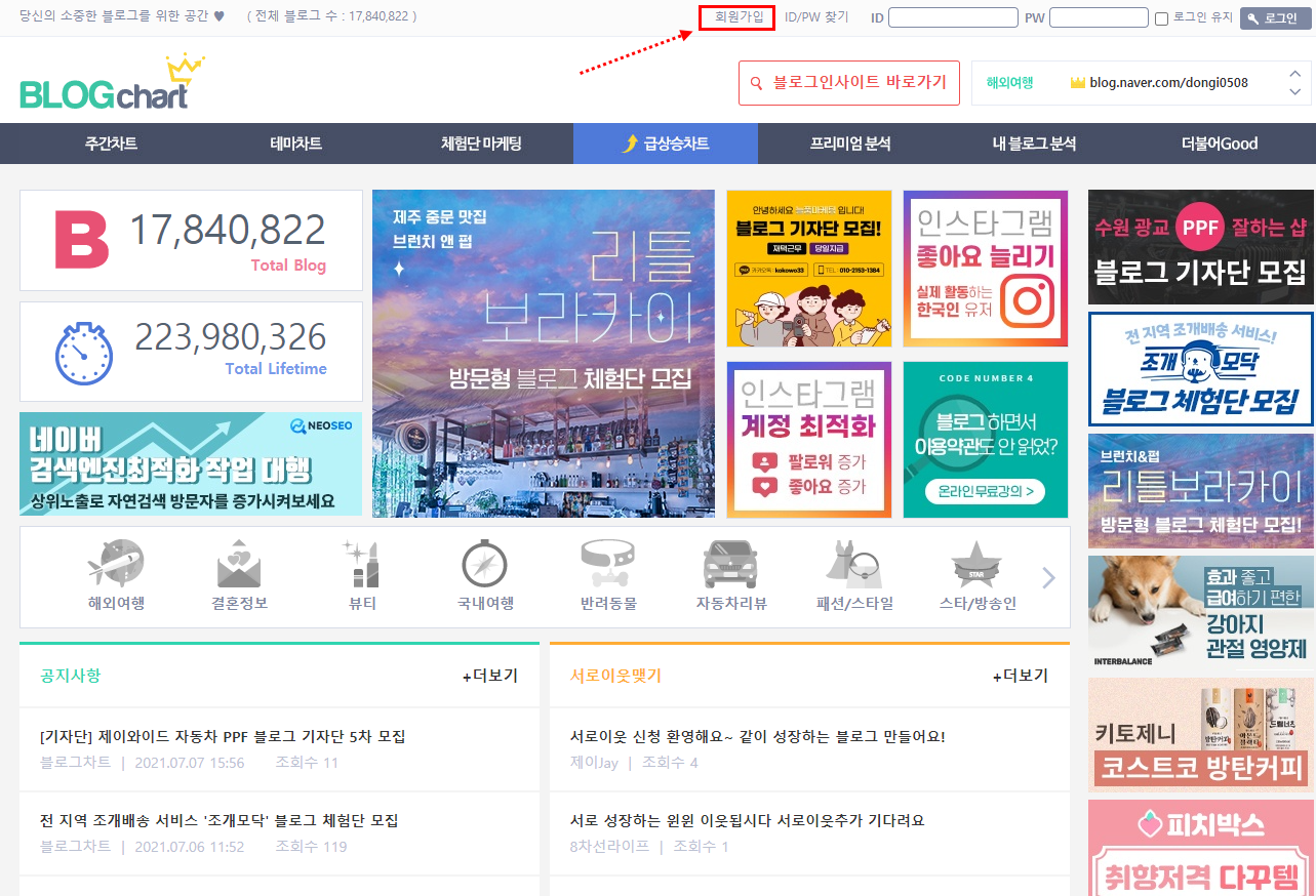 2. 블로그차트 회원가입