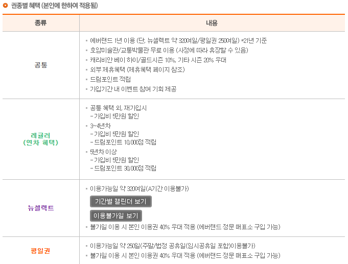 '뉴셀렉트' 이용권은 특정일을 제외한 1년중 약 320여일 사용 가능한 이용권입니다.