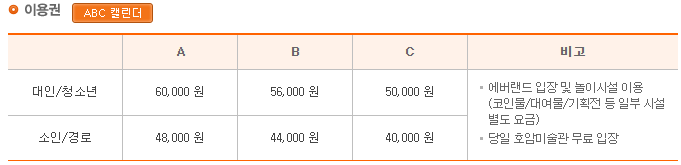 그럼 애버랜드 이용요금, 영업시간에 대해 알아보겠습니다.