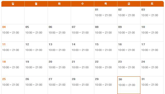 특별 행사나 애버랜드의 별도 공지가 없을 경우 하루 11시간 운영을 합니다.