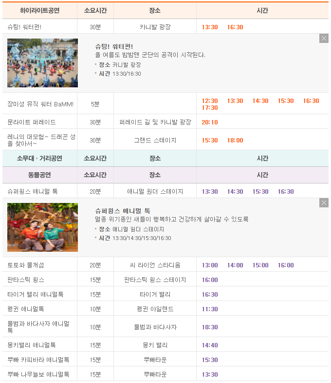 ※ 애버랜드 공연시간