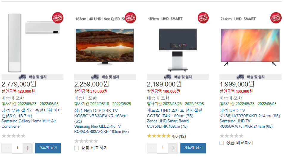 정해진 기간에 할인행사가 진행하며, 기간이 지날 경우 할인품목이 변경됩니다.