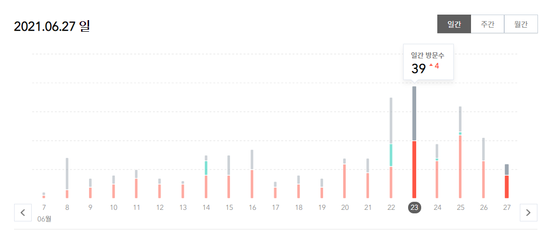 6월 23일에는 약 40명에 가까운 분들이 제 블로그에 방문해주셨습니다.