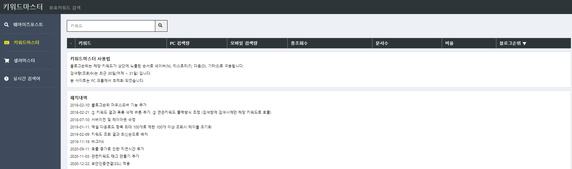 위의 이미지파일에서 보이는 '키워드마스터' 사이트에 접속합니다.