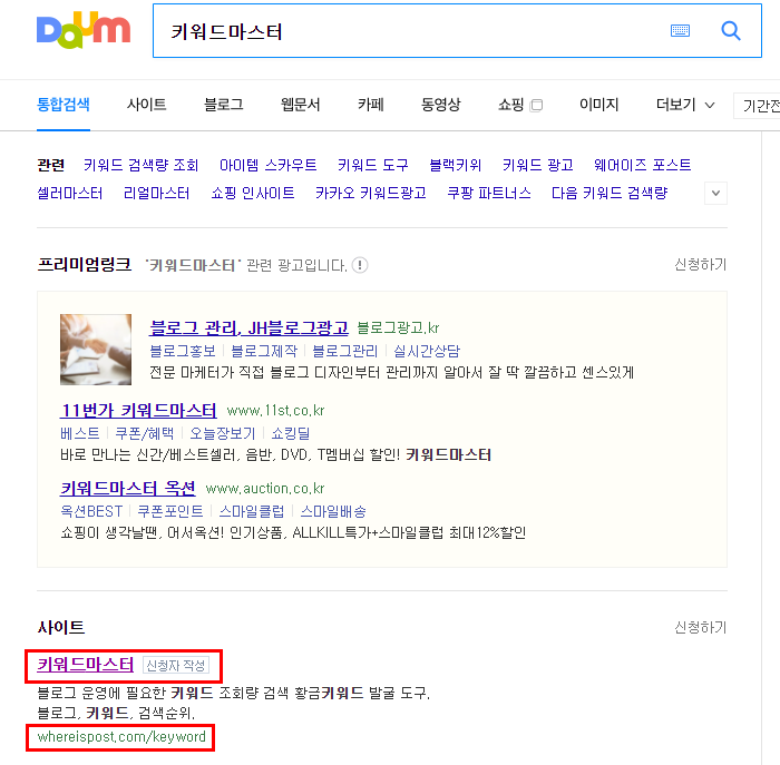 다음 포털사이트에서 '키워드 마스터' 를 검색해줍니다.