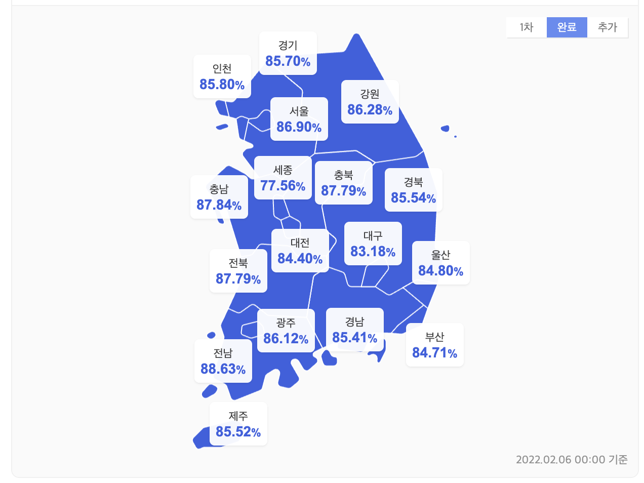 ※ 2022년 2월 6일 코로나 2차 백신접종 상세 현황