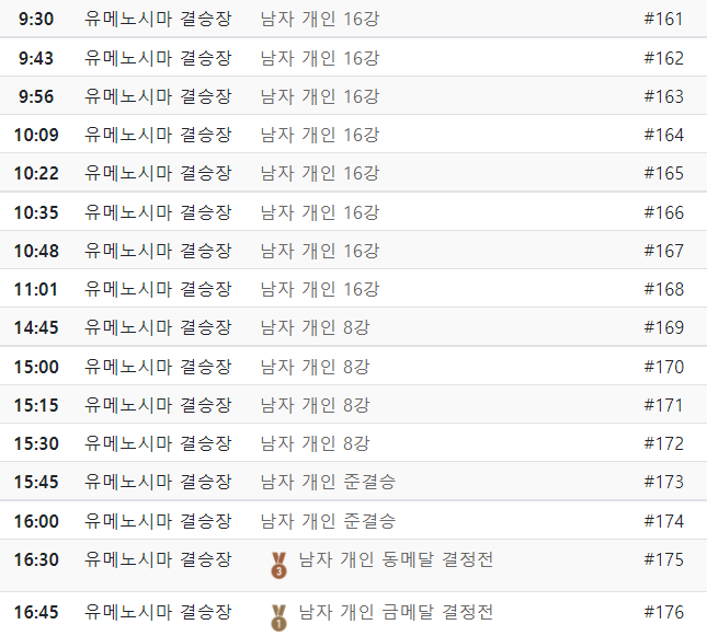 16:45 - 남자 양궁 개인 금메달 결정전