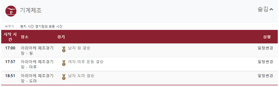 대한민국 선수들의 경기뿐만 아니라 모든 경기 일정입니다.