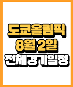 2020 도쿄올림픽 8월 2일 전체 경기일정에 대해서 알아보겠습니다.