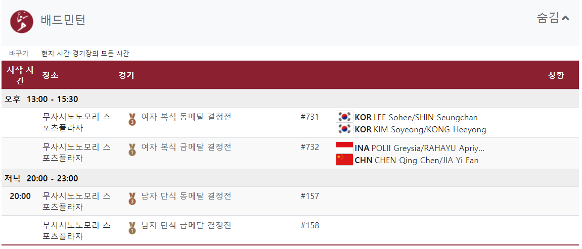 상세 경기일정을 참고하여 올림픽 시청에 도움이 되었으면 바랍니다.