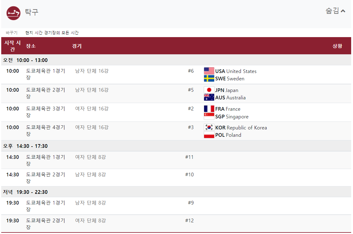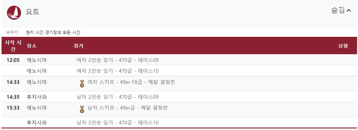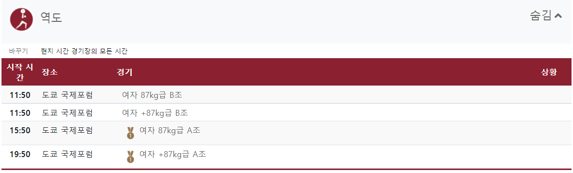 2020 도쿄올림픽 8월 2일 전체경기 일정을 알아보았습니다.