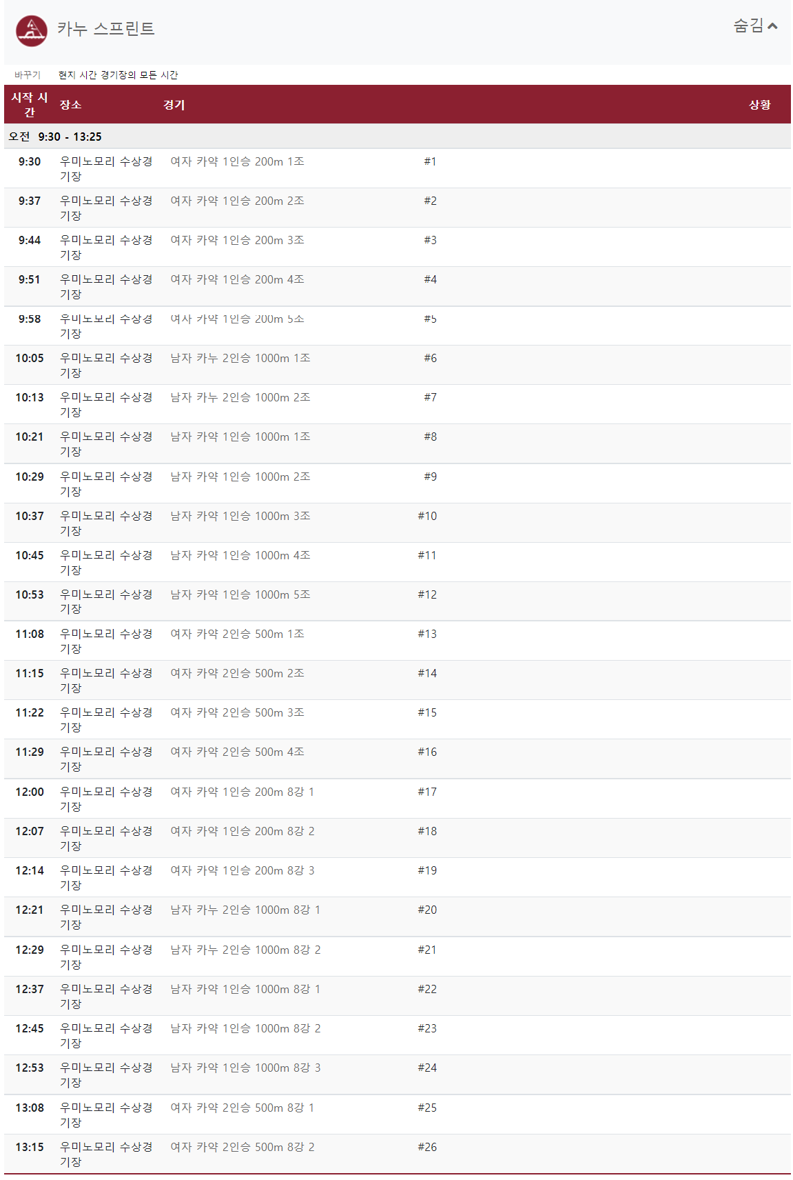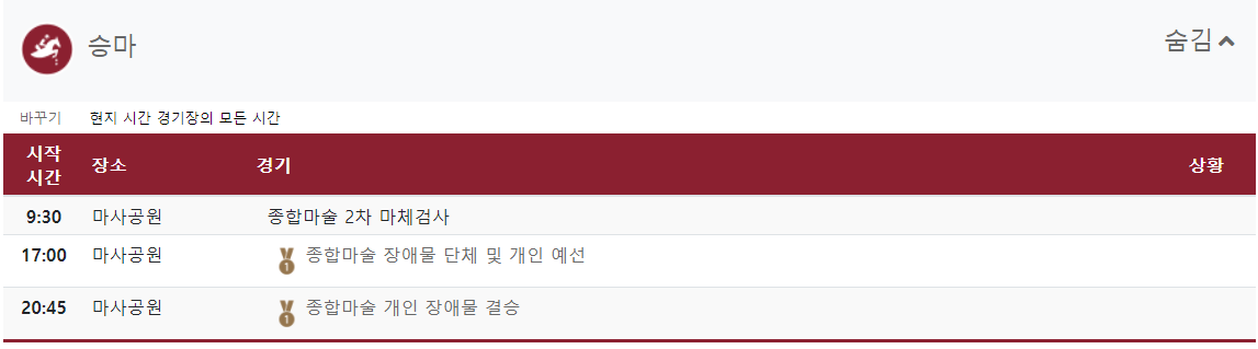 (각 종목별로 상세일정표 확인해보세요.)