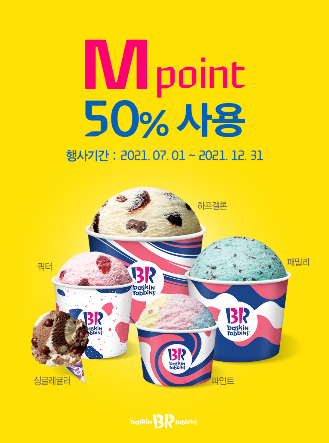 배스킨라빈스에서 제품 구매 시 제품 금액에 최대 50%를 M 포인트 사용 할 수 있습니다.